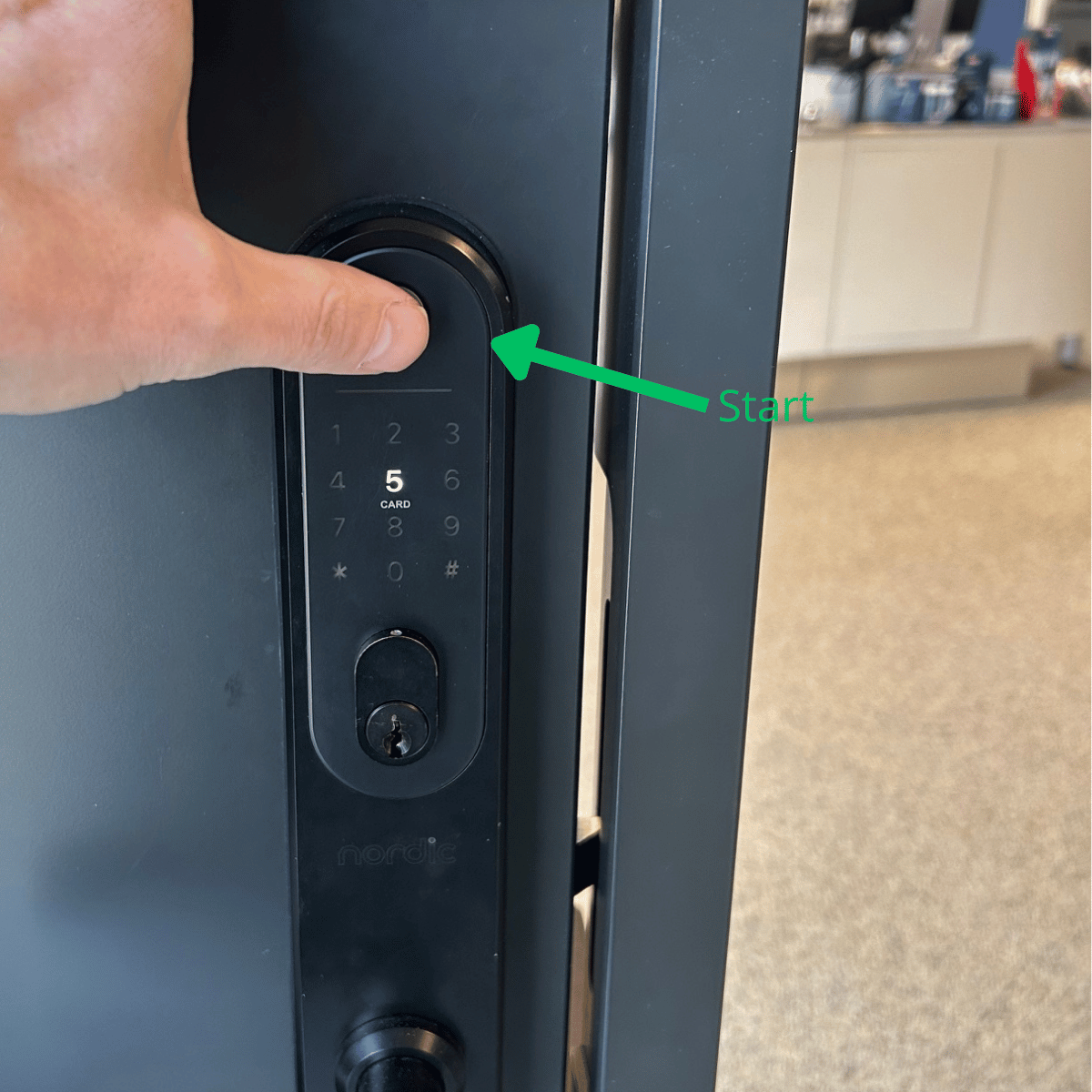 - Tryk på start/lås for at tænde BG3000 Smart Lock.