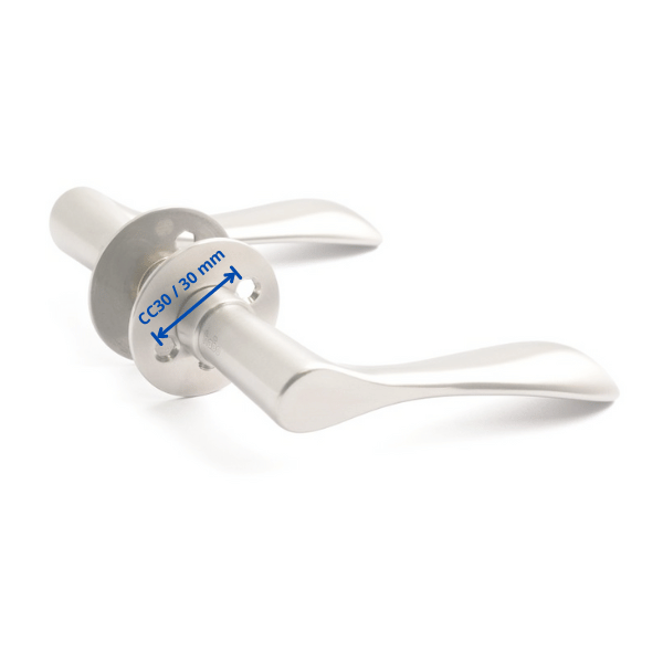 CC målet, eller center-center målet, angiver afstanden mellem skruehullerne i rosetten på det dørgreb som skal monteres, ofte er det CC30 til nyere døre med gennemående skruer, og CC38 til ældre døre hvor det monteres med små træskruer.