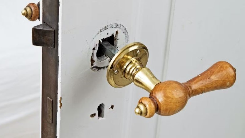 Låsekasser til ældre døre kræver montering med træskruer. Disse skruer går direkte ind i træet uden at gå igennem hele døren.